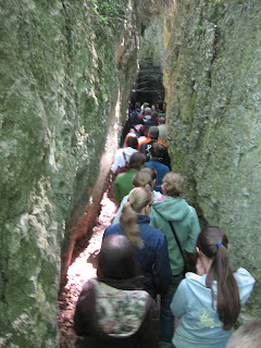 Krótka wizyta na punkcie widokowym w Dolinie Sąspowskiej i już idziemy prosto do sławnej Jaskini Łokietka! Sama jaskinia całkiem ładna, ale sposób zwiedzania hmm. Jak wspomniałam jaskinia ta jest powszechnie znana, więc przewodnicy starają się wpuścić jak najwięcej grup. Wchodzi tłum ludzi, przewodniczka głosem słabo słyszalnym na tyłach coś opowiada i po 10 min jest się już na zewnątrz aby mogła wejść następna grupa. Jedyne co zapamiętałam to: „Nie wyprzedzać przewodnika, bo nie wolno; nie robić zdjęć, bo nie wolno; nie zabić się, bo ślisko.”.