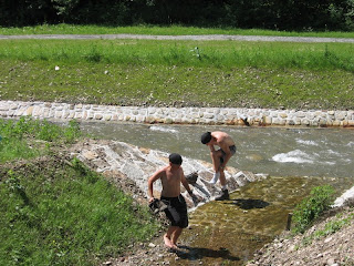 Przez lasy i błota doszliśmy do miejsca noclegu, którym był Lądek Zdrój, a dokładniej salka przy plebanii. Ksiądz udostępnił nam łazienkę, więc zamiast planowanej wcześniej pizzy w Lądku, wieczór upłynął nam na czekaniu w kolejce pod prysznic i graniu w mafię. Jedynie Bazyle zamiast czekać na łazienkę, poszli wykąpać się w rzece.