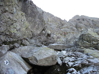 Zejście wcale nie było łatwiejsze. Znów pięć punktów oparcia i jedziemy! Zajechaliśmy ciut za daleko, bo jakiś turysta przed nami zgubił szlak, a my poszliśmy z nim... Na szczęście w porę zorientowaliśmy się, że szlak biegnie inną drogą i udało nam się wgramolić na górę.